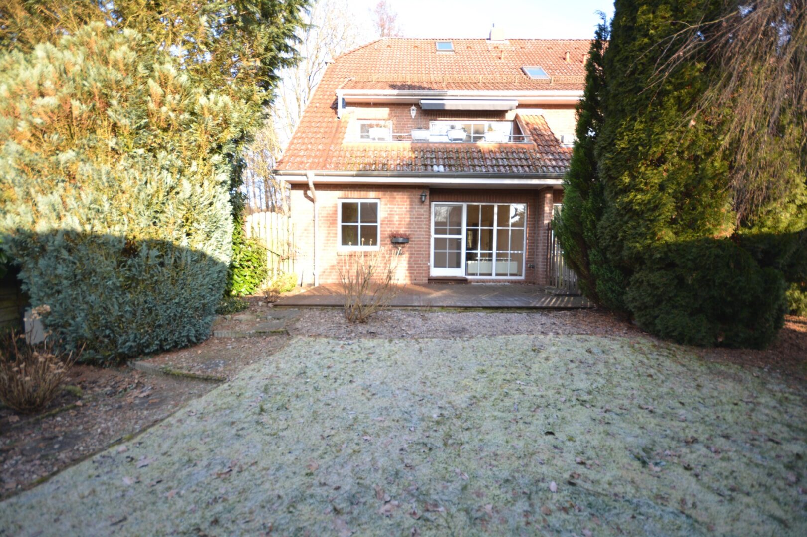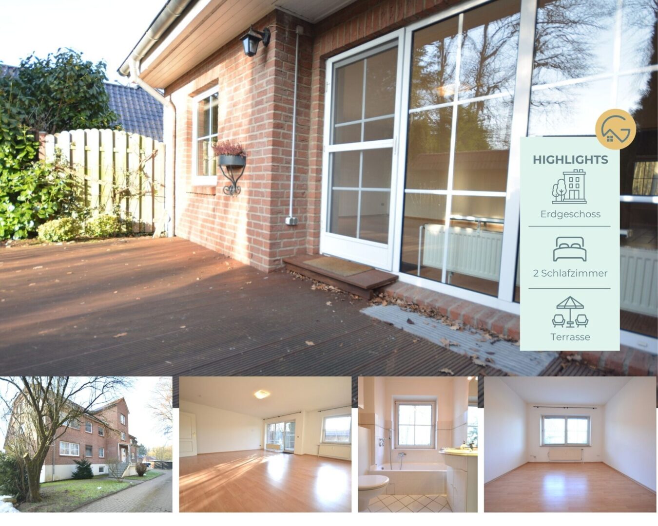 Ein echtes Highlight der Wohnung stellt die schöne Terrasse dar. Umgeben von einer grünen Umgebung bietet sie einen attraktiven Bereich für entspannte Stunden im Freien. Nach einem arbeitsreichen Tag mit einem Tee und einem spannenden Buch im Liegestuhl in der frischen Luft sitzen – einfach herrlich!