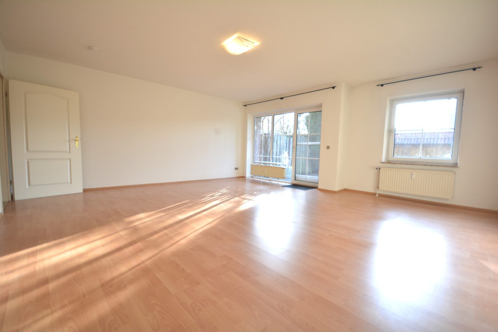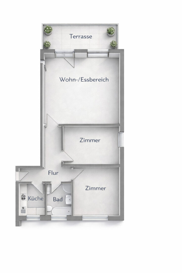 Mittelpunkt der Wohnung ist der großzügige Wohn- und Essbereich, der viel Platz für eine individuelle Möblierung sowie für gemeinsame Mahlzeiten und Aufenthalte bietet. Große Fensterflächen sorgen für eine freundliche und helle Atmosphäre. Die Küche ist mit einer Einbauküche inkl. Elektrogeräten ausgestattet.