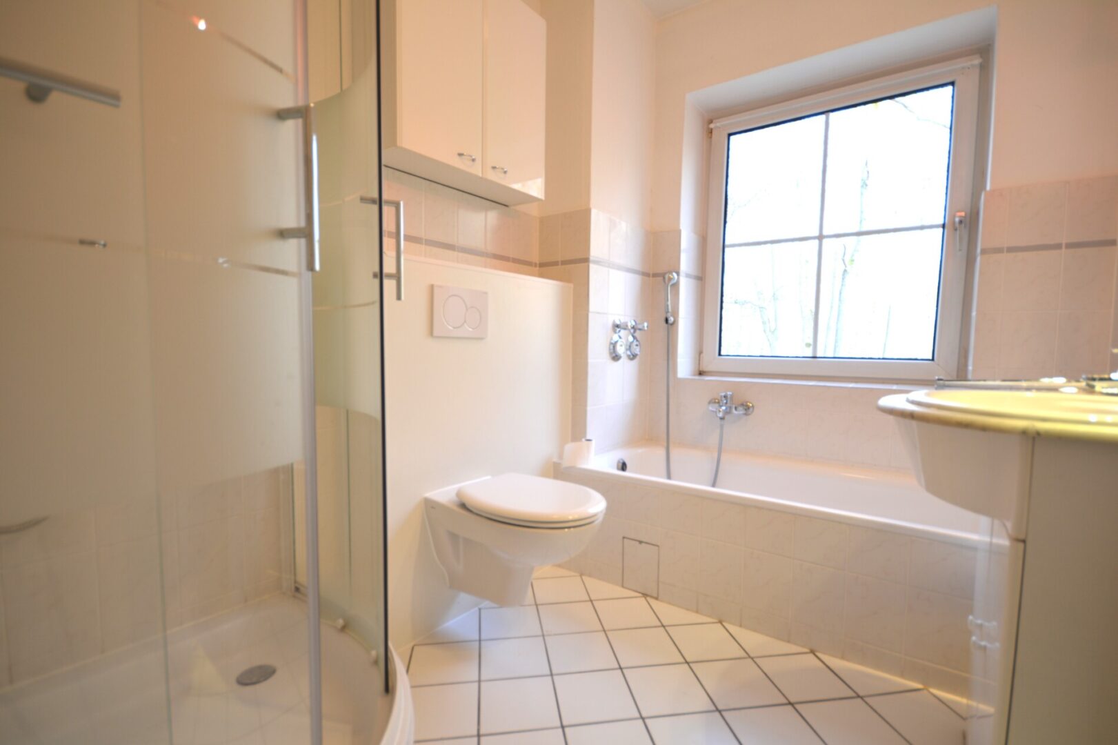 Das Badezimmer bereichert den Wohnkomfort zusätzlich: Es verfügt sowohl über eine Dusche als auch über eine Badewanne. Das Tageslichtfenster sorgt für eine angenehme Beleuchtung sowie eine natürliche Belüftung, wodurch sich der Raum besonders komfortabel nutzen lässt.