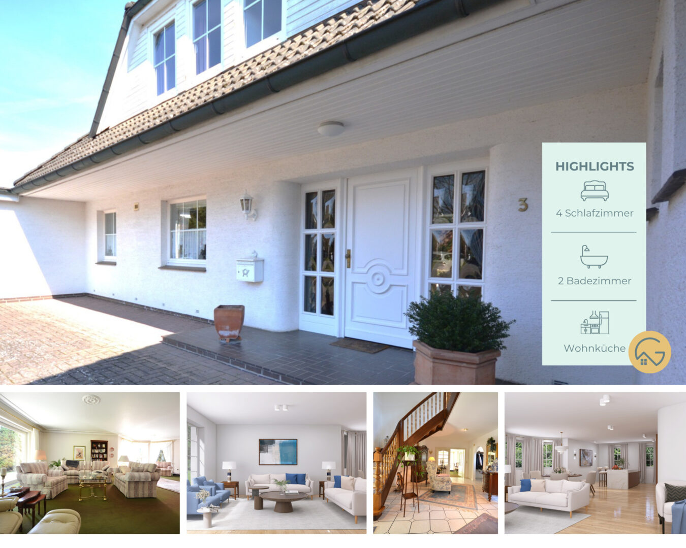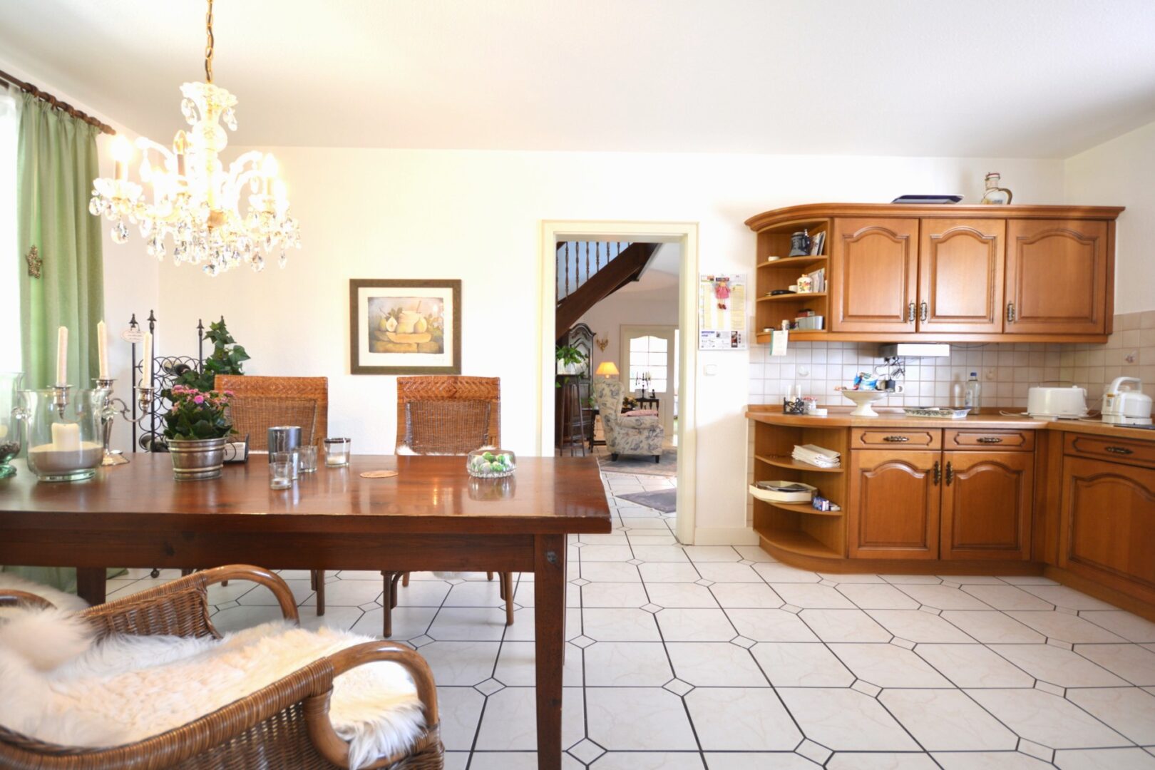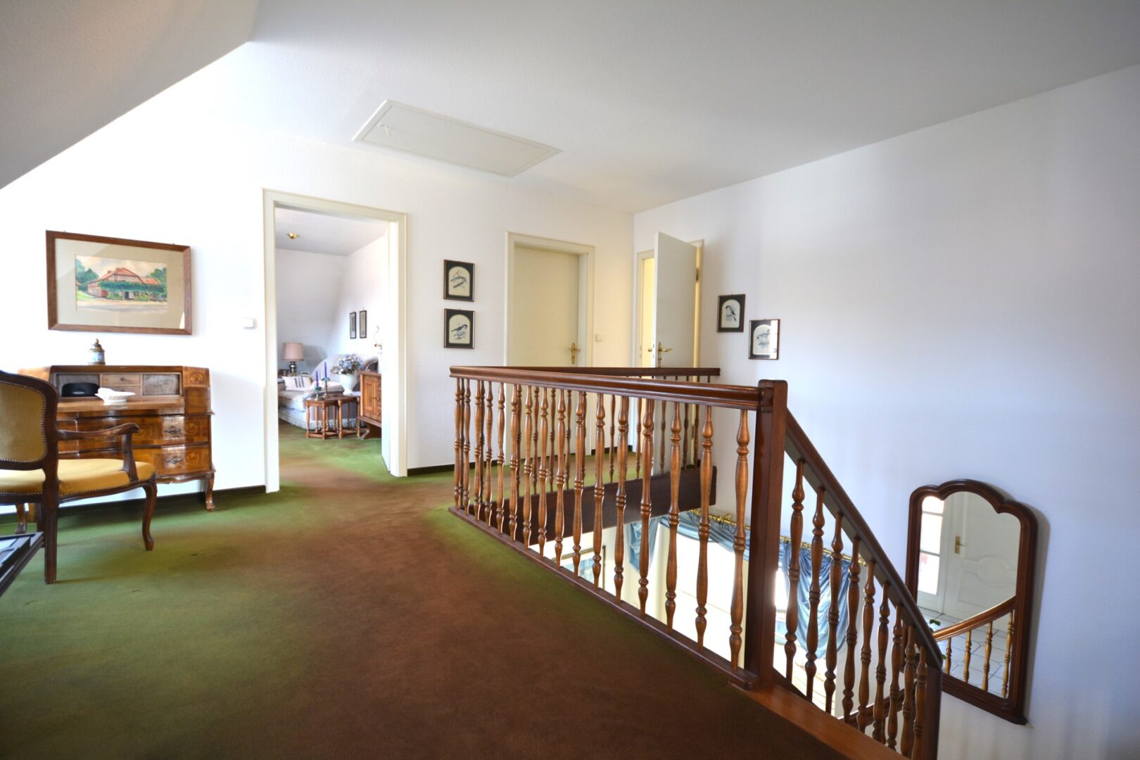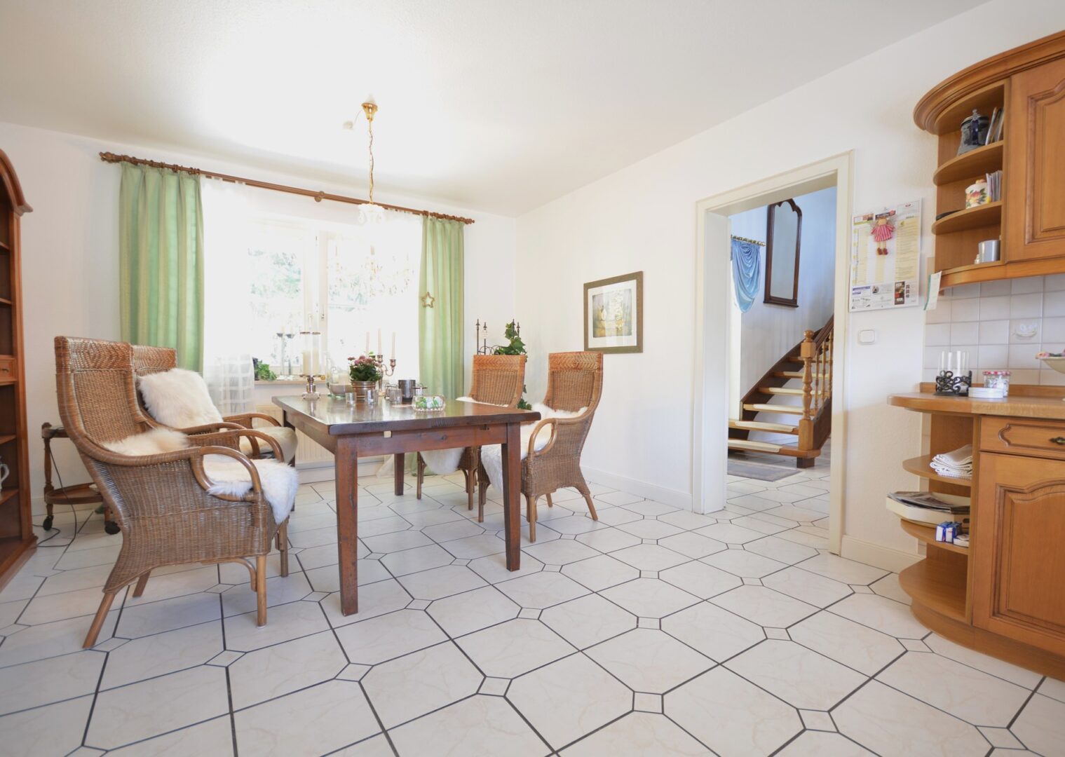 Schon der beeindruckende Eingangsbereich mit der geschwungenen, massiven Holztreppe in das obere Geschoss heißt Sie herzlich Willkommen.