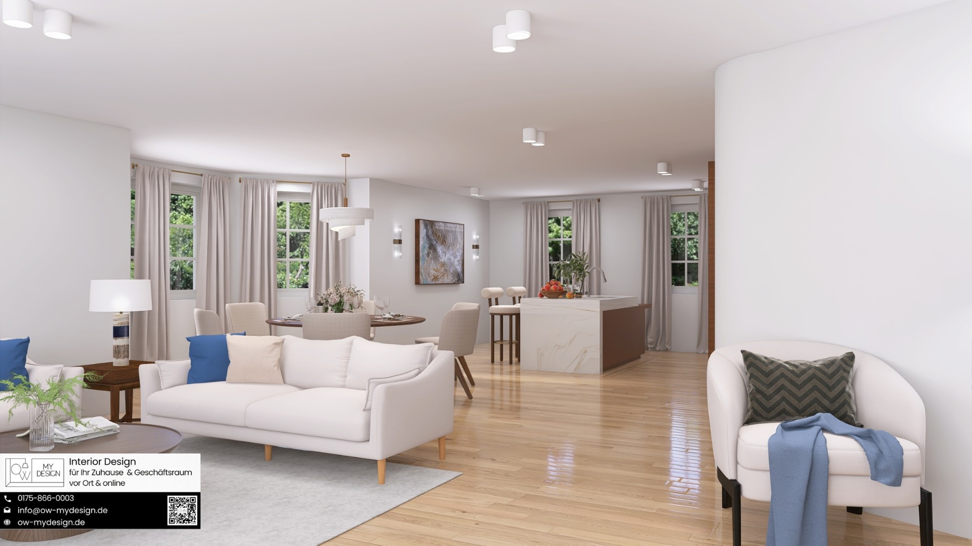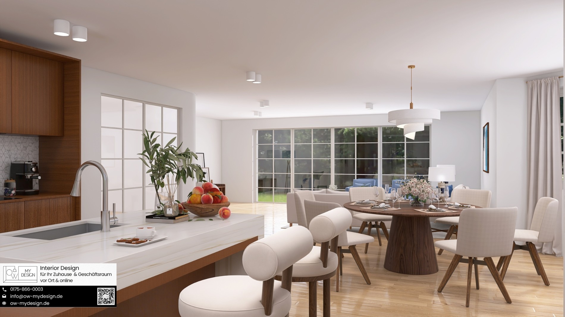 Im weitläufigen Wohn-Essbereich, der das Herzstück des Hauses bildet, laden großzügige Raumproportionen dazu ein, moderne Einrichtungsideen zu verwirklichen. Hier besteht die Möglichkeit, eine integrierte Küche entstehen zu lassen. Auf diese Weise kann zusätzlicher Raum im EG geschaffen werden, der ideal als separates Büro genutzt werden könnte und so einen flexiblen Arbeitsbereich zuhause bietet.