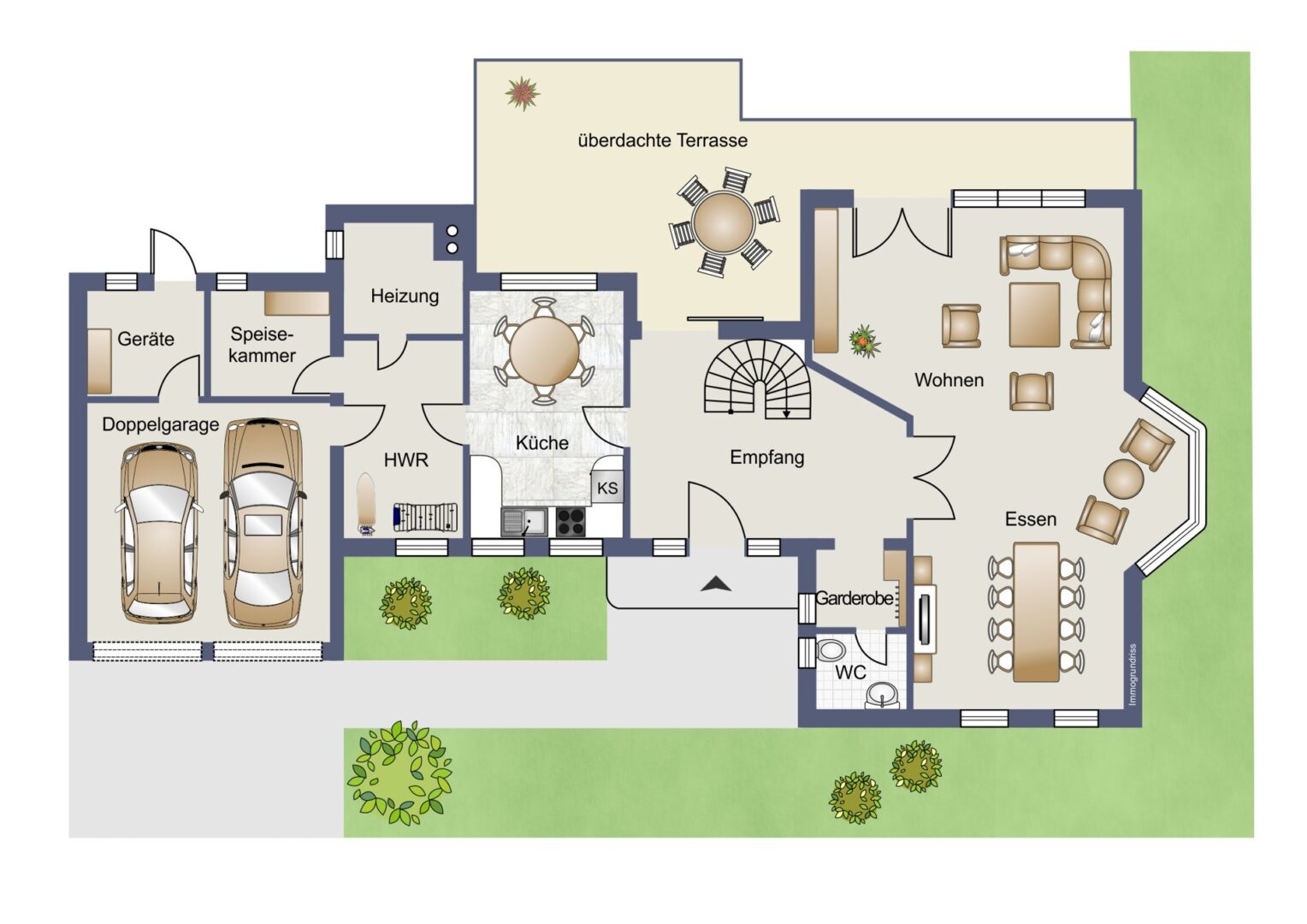 Eine Doppelgarage bietet nicht nur hervorragenden Schutz für Ihre Fahrzeuge, sondern ermöglicht auch den direkten Zugang zum Haus, was besonders bei schlechtem Wetter von Vorteil ist.