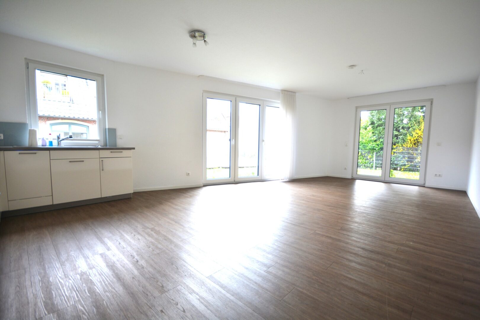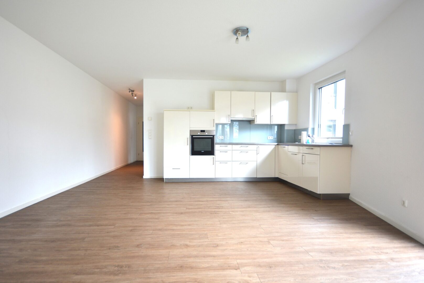 Der Mittelpunkt der Wohnung ist der großzügige Wohn-Ess-Kochbereich inkl. Einbauküche mit direktem Zugang zur Terrasse - ein idealer Ort zum geselligen Beisammensein.