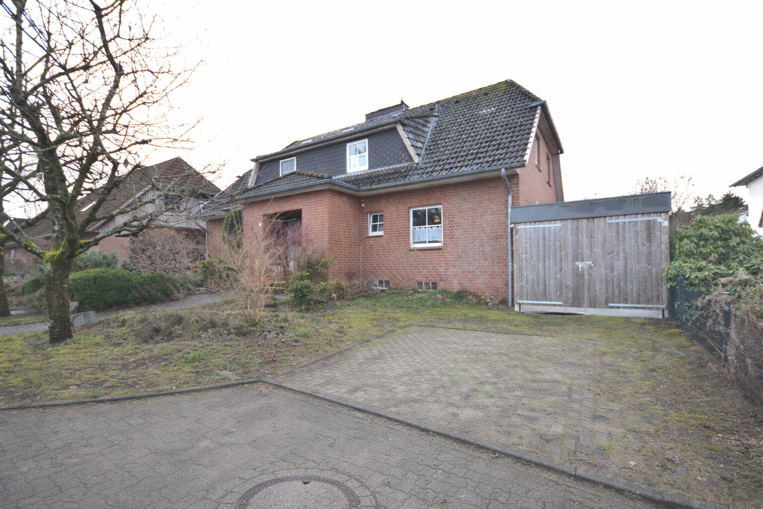 Die Terrasse, die 2016 mit einem Holzboden versehen wurde, lädt zum Verweilen ein – und dank der Markise lässt sich hier auch an sonnigen Tagen wunderbar entspannen. Der Garten samt Gartenhaus bietet viele Möglichkeiten zur individuellen Gestaltung, ob für Blumen, Gemüse oder als gemütlicher Rückzugsort. Im vorderen Bereich des Hauses steht ein geschlossenes Carport für ein Fahrzeug bereit.