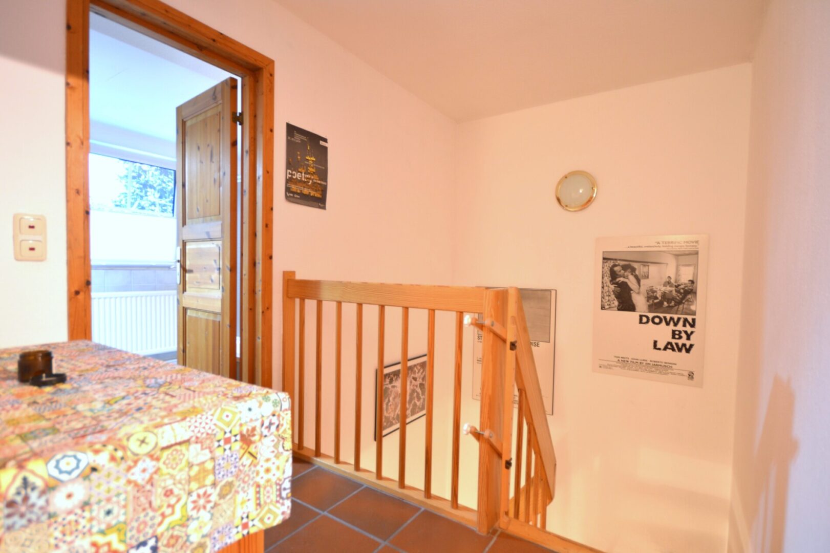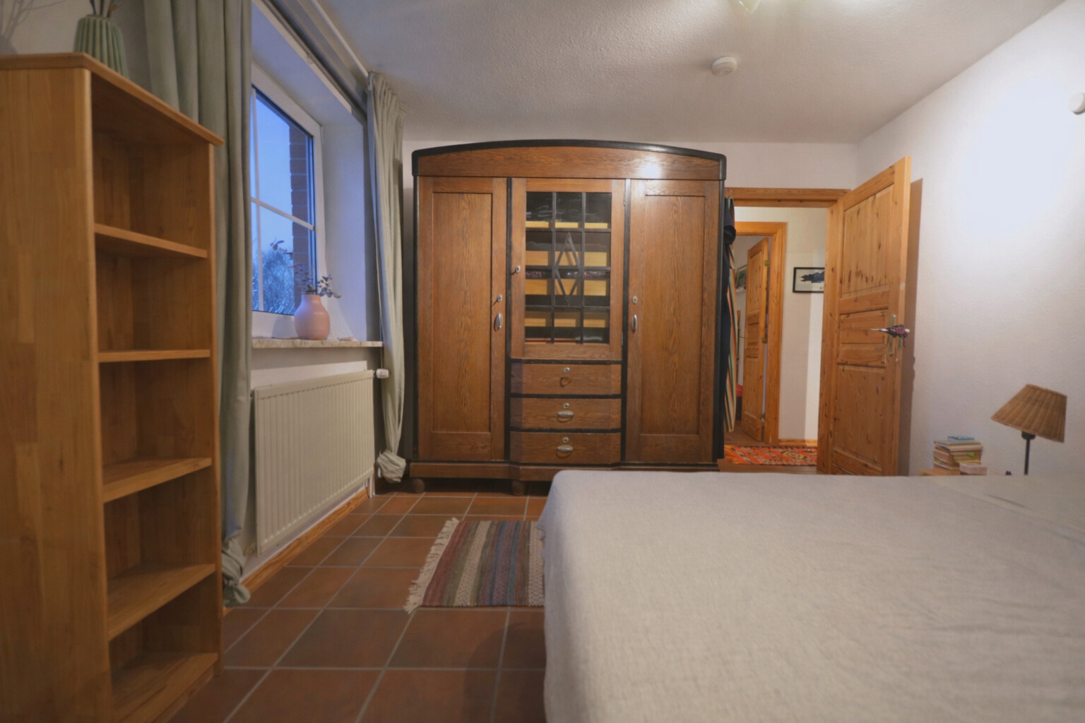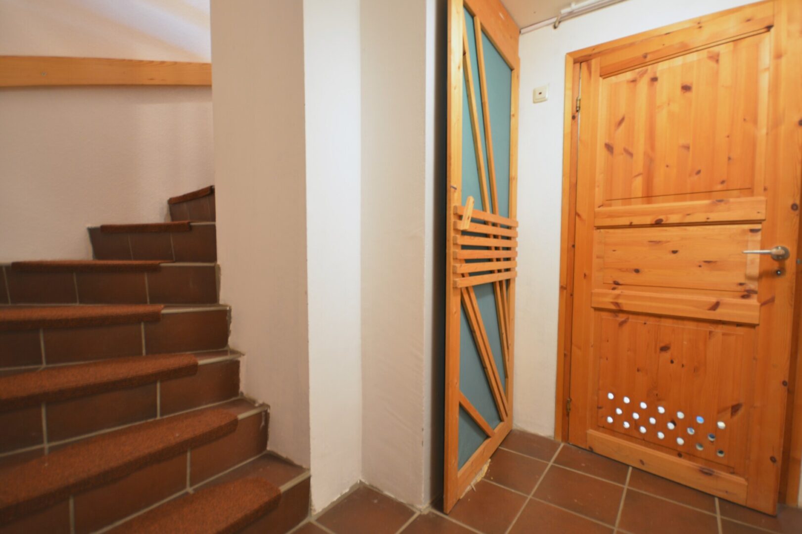 Der zentrale Treffpunkt des Hauses ist der gemütliche Wohn- und Essbereich mit rustikalen Bodenfliesen. Diese verleihen dem Raum eine behagliche Atmosphäre und laden zu geselligen Stunden mit Familie und Freunden ein.