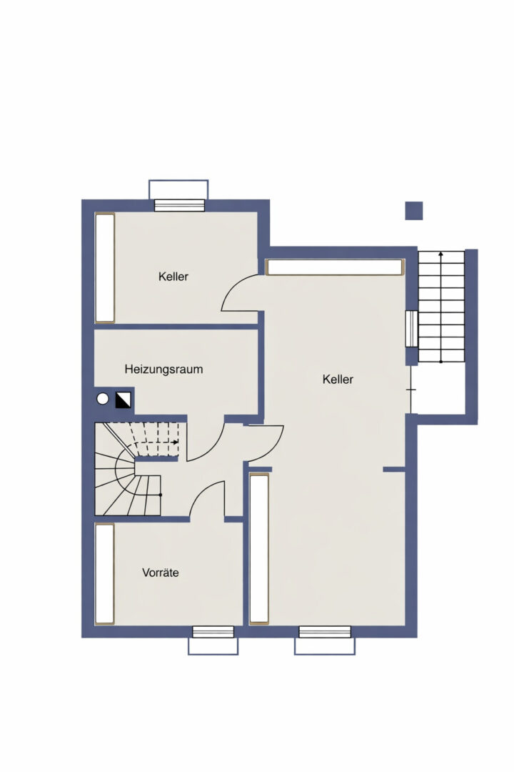 Der großzügige Kellerbereich sorgt für praktischen Stauraum und bietet beheizbare Räume, die sich ideal als Hobbyraum, Werkstatt oder Fitnessbereich nutzen lassen.