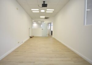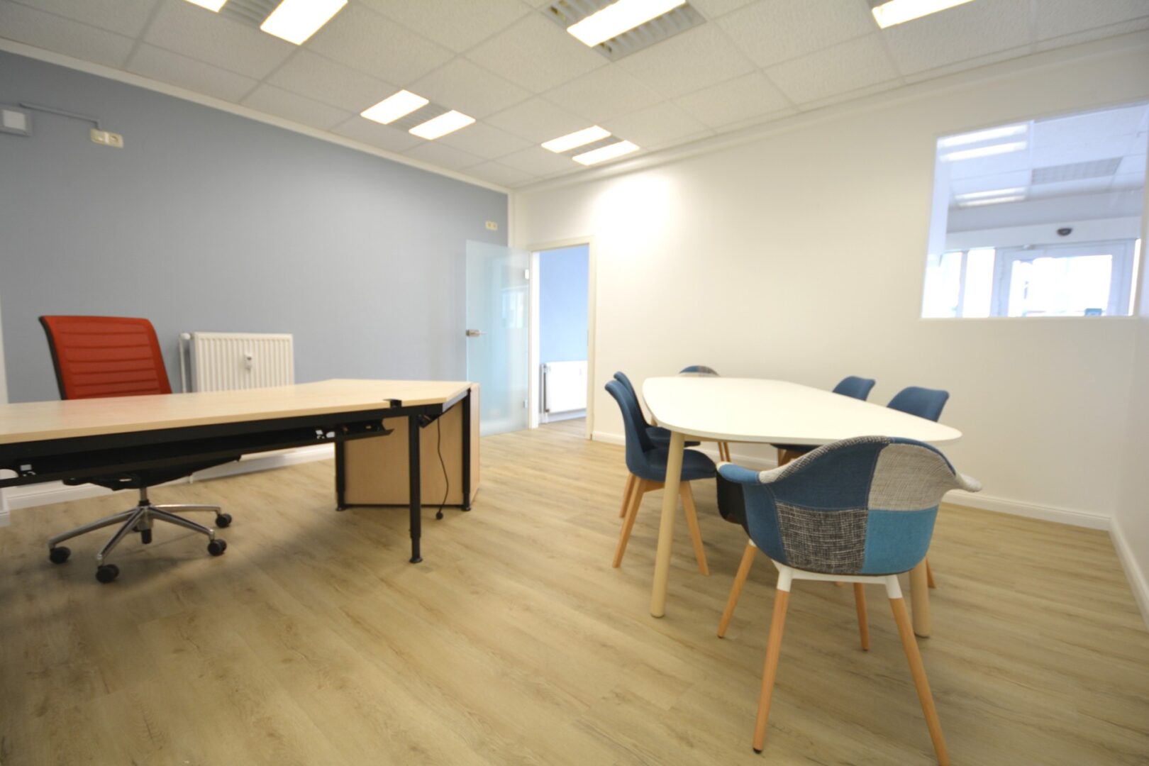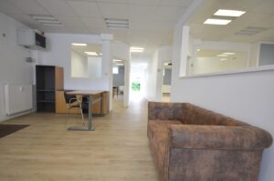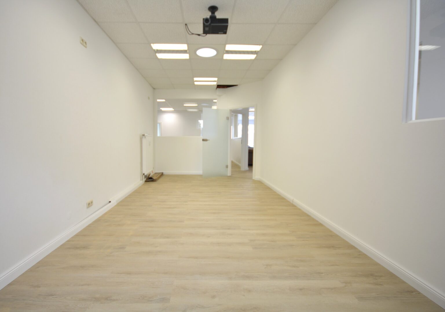 Derzeit ist die Fläche durch moderne Leichtbauwände in verschiedene funktionale Zonen unterteilt, darunter eine großzügige Büro- und Empfangsarea sowie zusätzliche Räume, wodurch vielfältige Nutzungsmöglichkeiten entstehen.