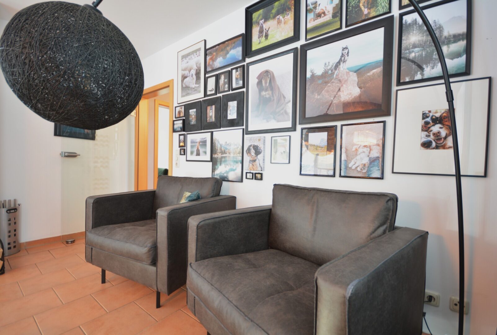 Die im Jahr 2007 errichtete und 2024 modernisierte DHH bietet ca. 112 m² Wohnfläche mit ansprechendem Raumgefühl. Die Renovierung erfolgte mit modernem Interieurdesign. Im EG befinden sich ein großzügiger Wohn-/Essbereich mit Kaminofen, eine Küche mit Einbauküche sowie ein HWR. Ein weiterer Raum eignet sich ideal als Büro für die Tierpension (33 m² Nutzfläche). Im OG stehen drei helle Zimmer sowie zwei Bäder zur Verfügung. Fußbodenheizung im EG und in den Bädern sorgt für hohen Wohnkomfort. Das DHH wird FREI übergeben.