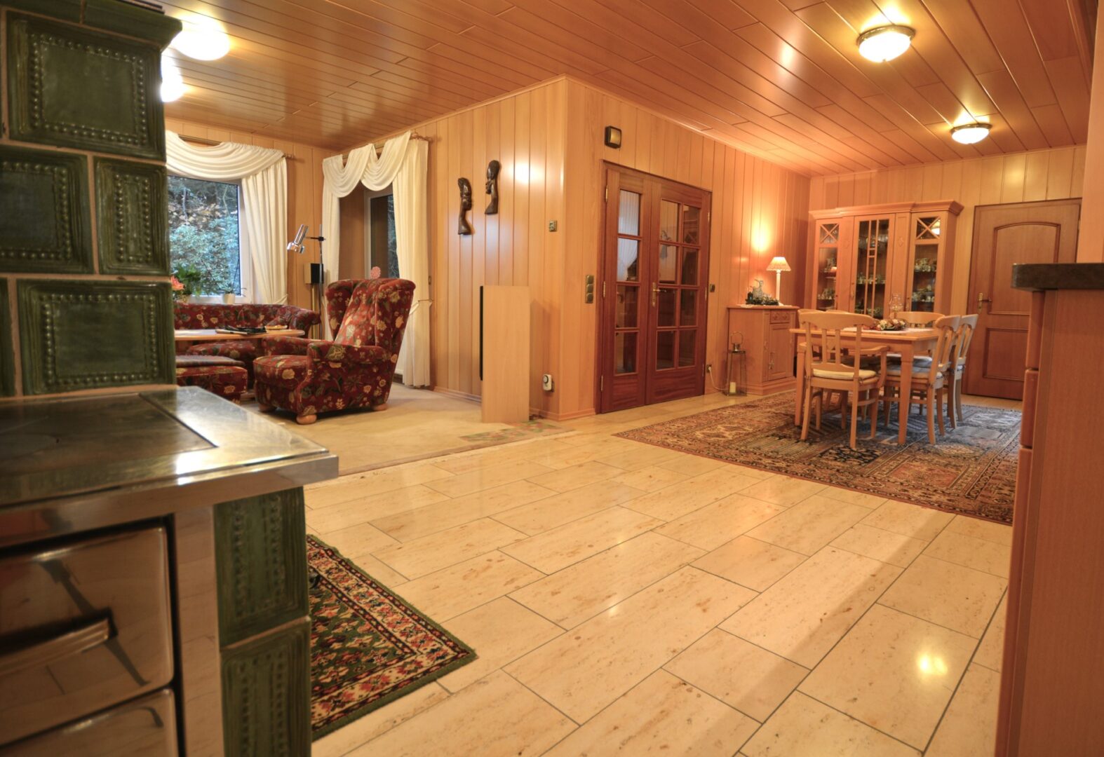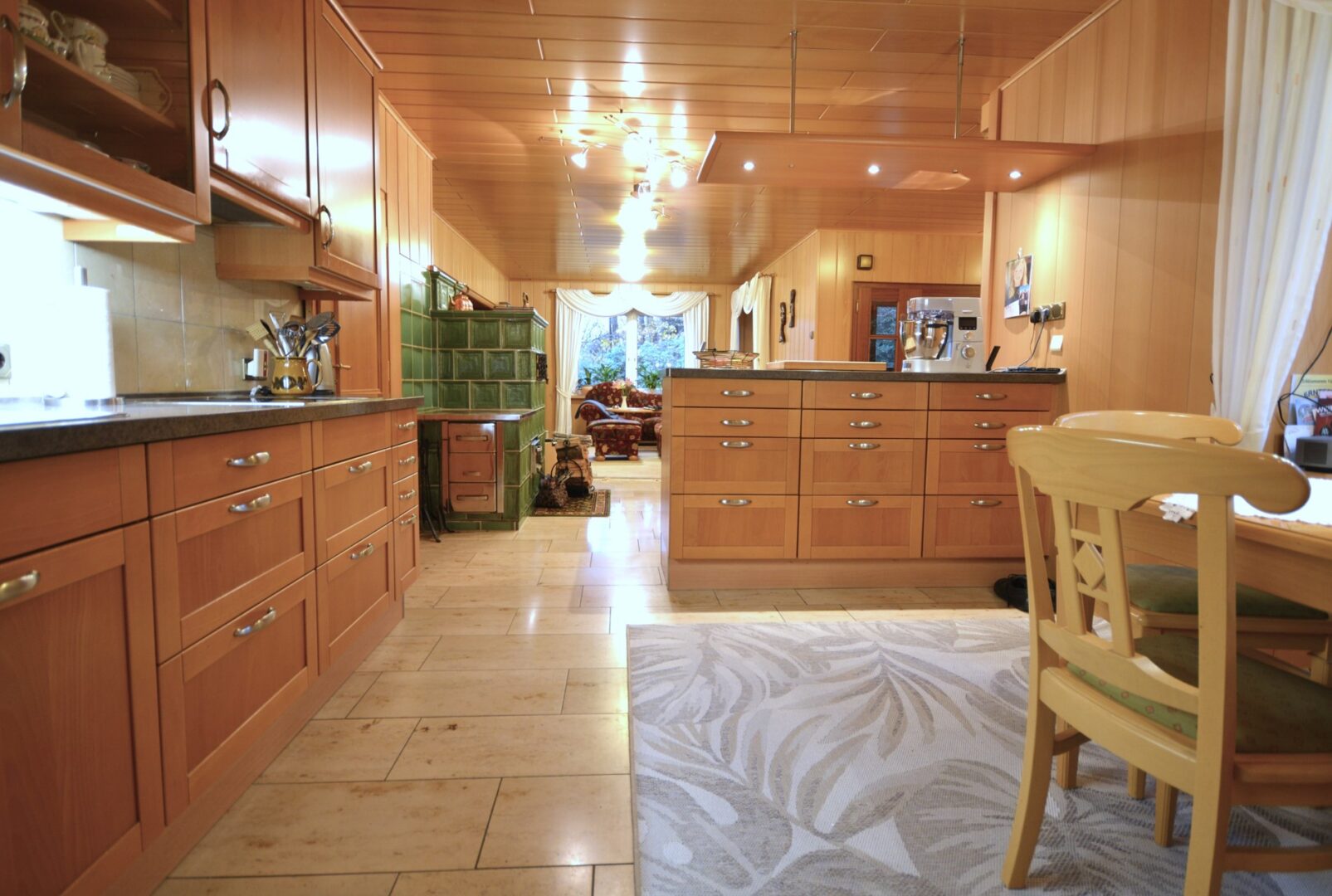 Treten Sie ein in dieses einladende Einfamilienhaus mit einer großzügigen Raumaufteilung und hochwertiger Ausstattung. Durch das durchdachte Raumkonzept verschmelzen Kochen, Essen und Wohnen zu einem zentralen Treffpunkt für Familie & Freunde. Ein großer integrierter Kachelofen im Wohnbereich dient nicht nur als Wärmequelle, sondern auch als Ort, an dem gemeinsam gekocht und entspannt werden kann.