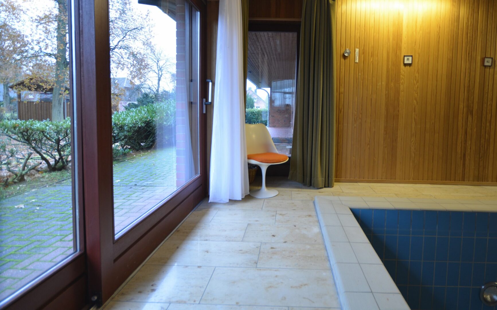 Ein außergewöhnliches Highlight: Das Schwimmbecken, derzeit außer Nutzung, kann durch eine technische Überholung wieder zum Leben erweckt werden. Erschaffen Sie hier Ihren persönlichen Wellnessbereich.